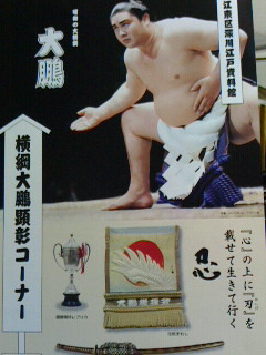 横綱大鵬の顕彰コーナーが出来たその特別企画のようです。残寝ながら浮世絵はコピーで手形などもありますが大鵬の手形は持っていませんが大体は持っています。