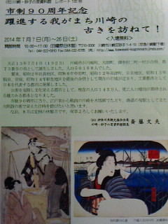 26日まで川崎・砂子の里資料館で川崎市制90周年記念として川崎を描いた浮世絵、木版画75点の展示。