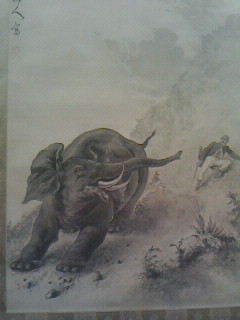 最初は河鍋暁斎の肉質画「豊干禅師」迫力ある大きな作品です。