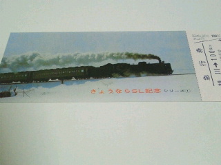 C57 形蒸気機関車 昭和50年5月1日 稚内から100Kの急行券200円