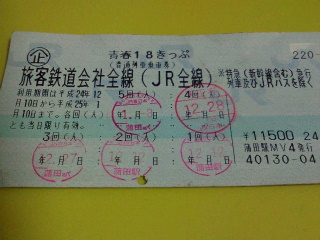 昨日から冬の青春18切符が発売されています。利用は12月10日から1月10日までの一カ月間。5日(5回)利用が出来、11500円、1日あたり2300円。