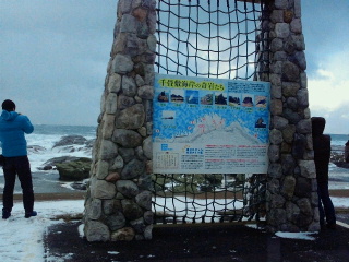 結局、鰺ヶ沢駅から秋田駅までバスで行く事に。海岸線は白波が立ち大荒れ。そして雪が強風でブリザードのように舞う。千畳敷で降りるも数分でバスへ戻る。やはり冬の日本海の荒れ方は凄い。