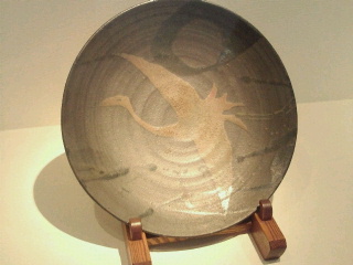 今回の展示は新しいものは色絵皿や赤い皿程度で大体前に見たようなものです。大きい壺なども前に見たような気がします。初めてのものも何点か有りました。大震災ではやはり倒れて割れたようです。此処はピアノ線で固定していないので前に見たときから何でと思っていました。