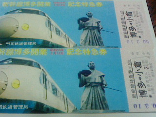 新幹線博多開業記念特急券