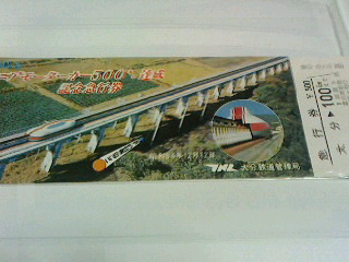 リニアモーターカー500K達成記念急行券