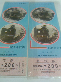 50年3月23日鹿児島鉄道管理局、西鹿児島駅から200K急行券料金300円。