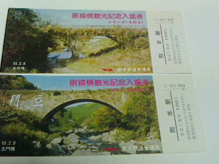 熊本駅入場券大坪橋、立門橋。江戸時代に良く出来たものです。