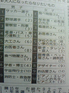 読売新聞に出ていた保育園・幼稚園・小学生にアンケートを取った結果です。
