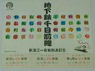 地下鉄千日前線 新深江―南巽開通記念乗車券 大阪交通局