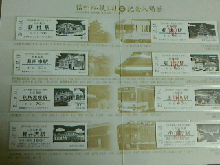 信州私鉄4社記念入場券(松本電気鉄道・長野電鉄・上田電鉄・しなの鉄道)21年10月14日鉄道の日発行