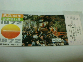 新橋―横浜間29Km初めての鉄道が開設され昭和47年100周年と言う事で全国主要各駅で記念切符、記念急行券が発売されました。当時は国鉄だけの開業記念日でした。