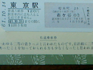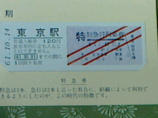 昭和時代は片道乗車券いわゆる二等切符、特急券三本線が特急、急行は二本線で斜線にて判別。