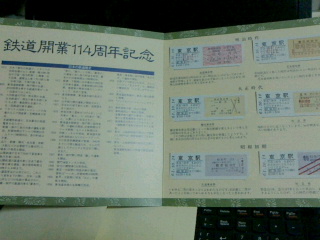東京駅発売で鉄道開業114周年記念入場券セットが61年10月14日D型硬券で復刻判です。